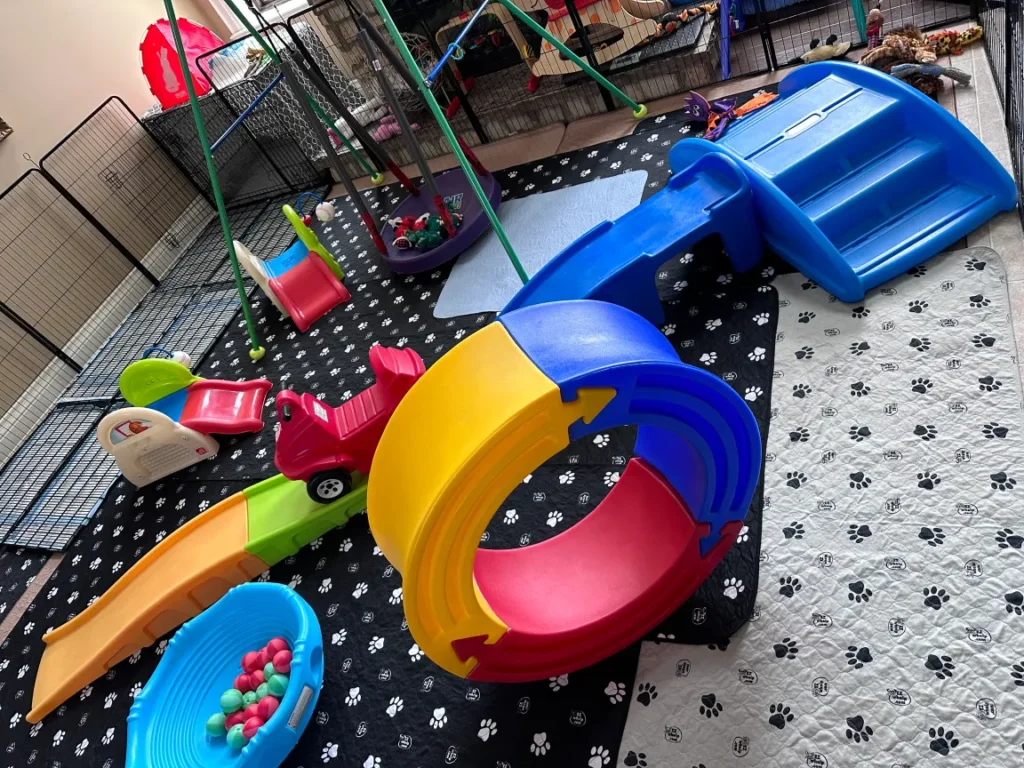 Our puppies enjoy daily supervised playtime in open, secure, and fenced outdoor yards. These areas are designed to encourage physical development and confidence-building. They include:
